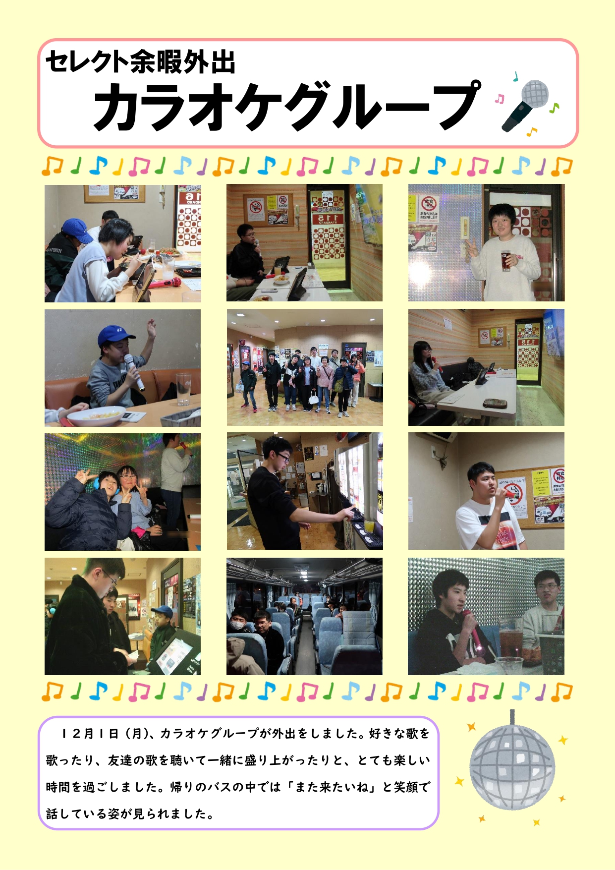 セレクト余暇外出(カラオケ)についての記事を掲載しました。