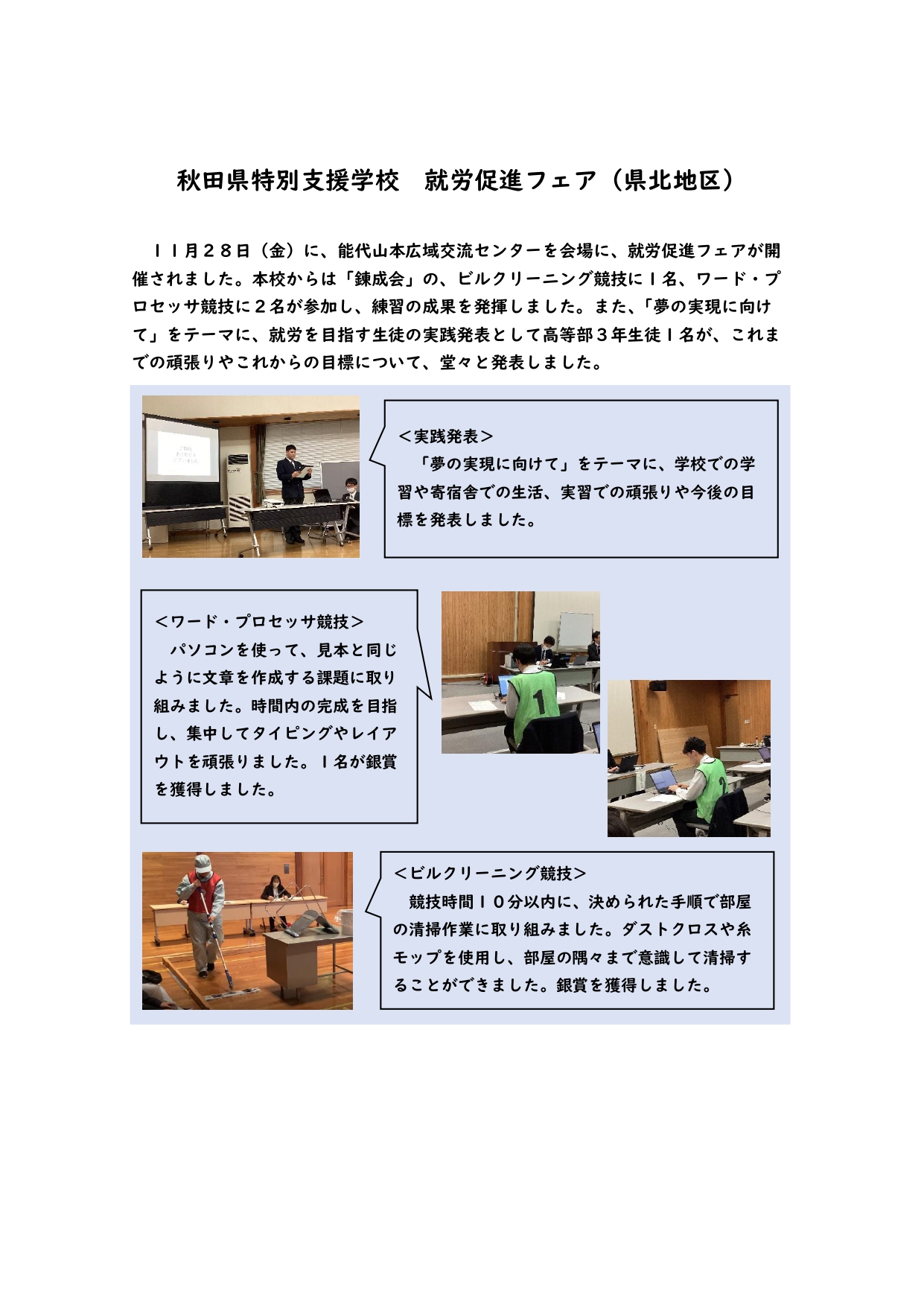 秋田県特別支援学校 就労促進フェア(県北地区)についての記事を掲載しました。