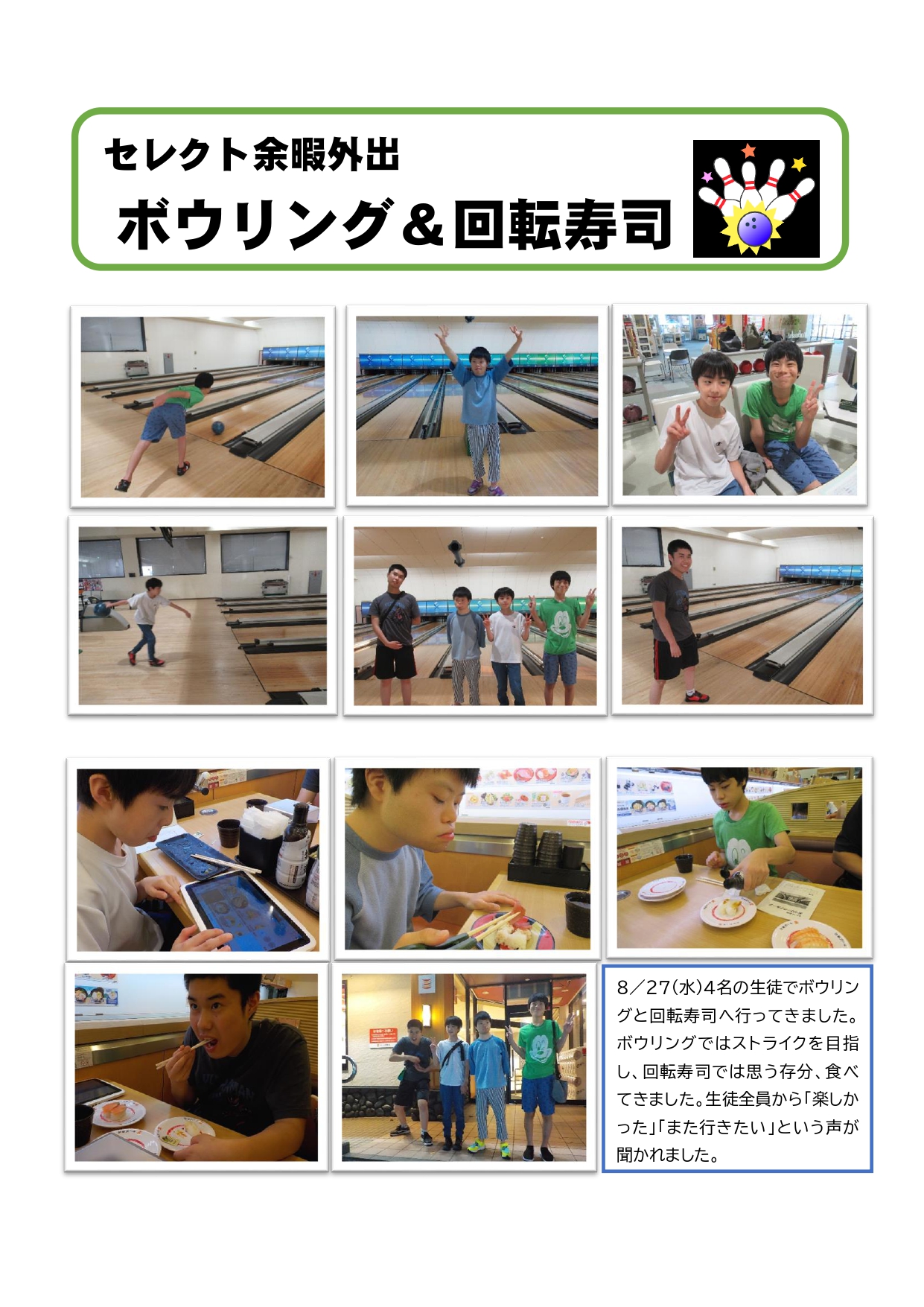 寄宿舎 セレクト余暇外出についての記事を掲載しました。