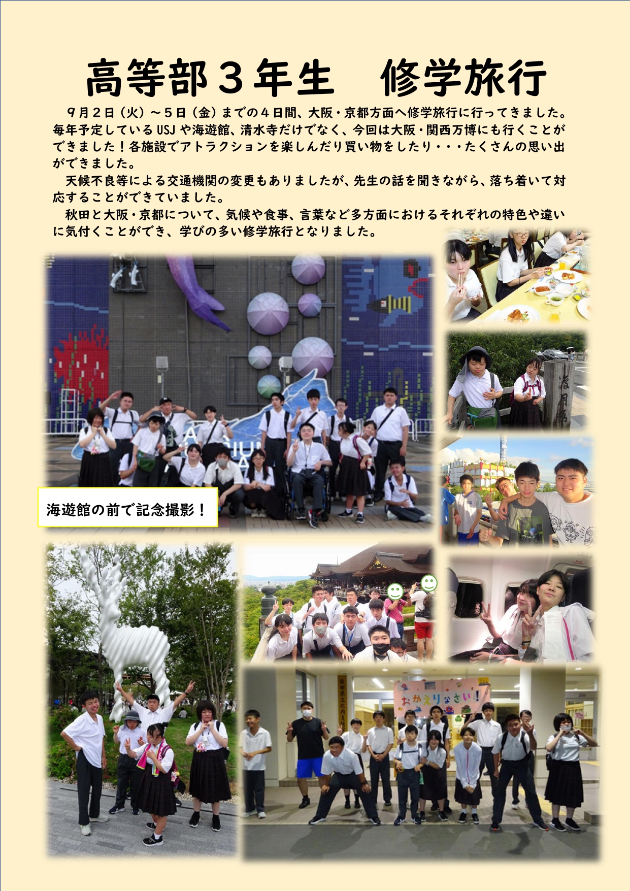 高等部3年生 修学旅行についての記事を掲載しました。